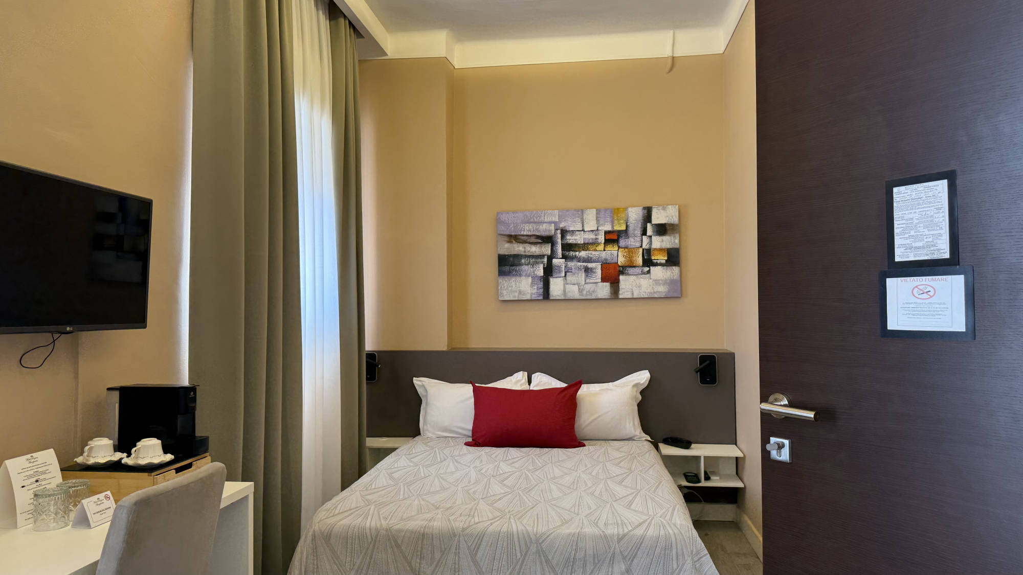 E' la tipologia Luxury di camera d'albergo progettata per ospitare due persone. Offre un letto matrimoniale, bagno privato, scrivania, TV, climatizzatore e Wi-Fi.
